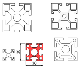 Perfil base de alumínio 30x30mm para estruturas de média resistência.
